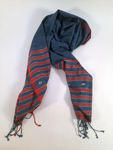 Little Flower Leprosy Rehabilitation Centre is in Raxaul, Bihar, N. India. Men and women hand spin silk yarn, and then weave it into scarves and throws. They also weave cotton fabric for scarves and napkins and towels.