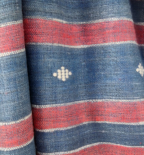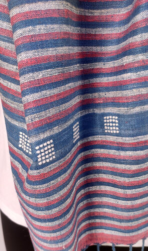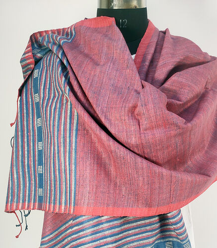 Gorgeous hand spun and hand woven eri silk scarf with small square or diamond motif woven into the border.