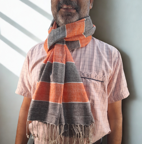 The wonderful thing about our eri silk scarves is that they can be warn by men or women. They can be either wrapped and tied around the neck or inside a coat or draped across shoulders on a cool summer evening as a stole.