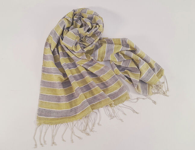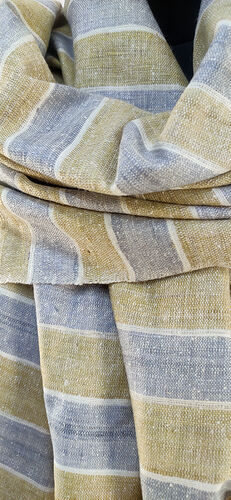 Equally attractive on men and women and with the added bonus that no silk worm has been killed in the production of the eri silk yarn as the cocoon is cut open and the silk worm removed before processing. The effect is a lovely textured slubby silk scarf.