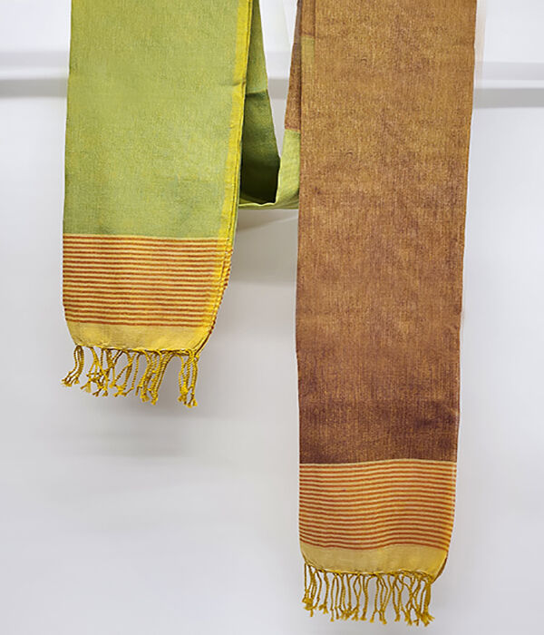 The scarf is hand woven in organic cotton by weavers in a south Indian workshop committed to employing people with disabilities.