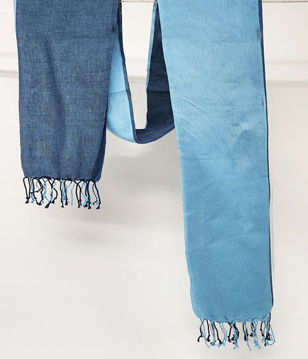 This two tone blue scarf is made off super soft fine organic cotton and can be worn draped or folded and tied at the neck.. The fine cotton ensures it is light and airy so perfect for Spring and Summer evenings.