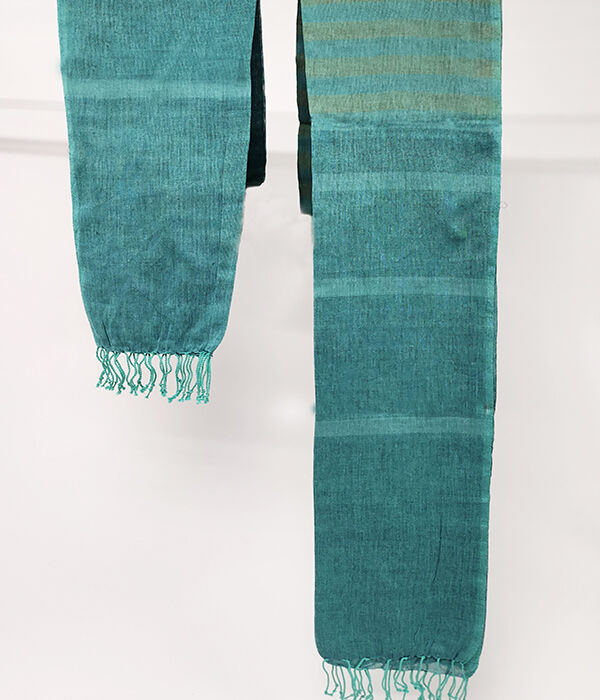 The scarf is hand woven in organic cotton by weavers in a south Indian workshop committed to employing people with disabilities.