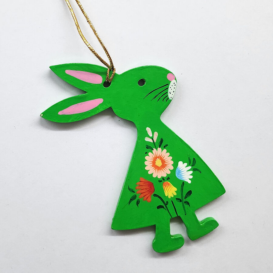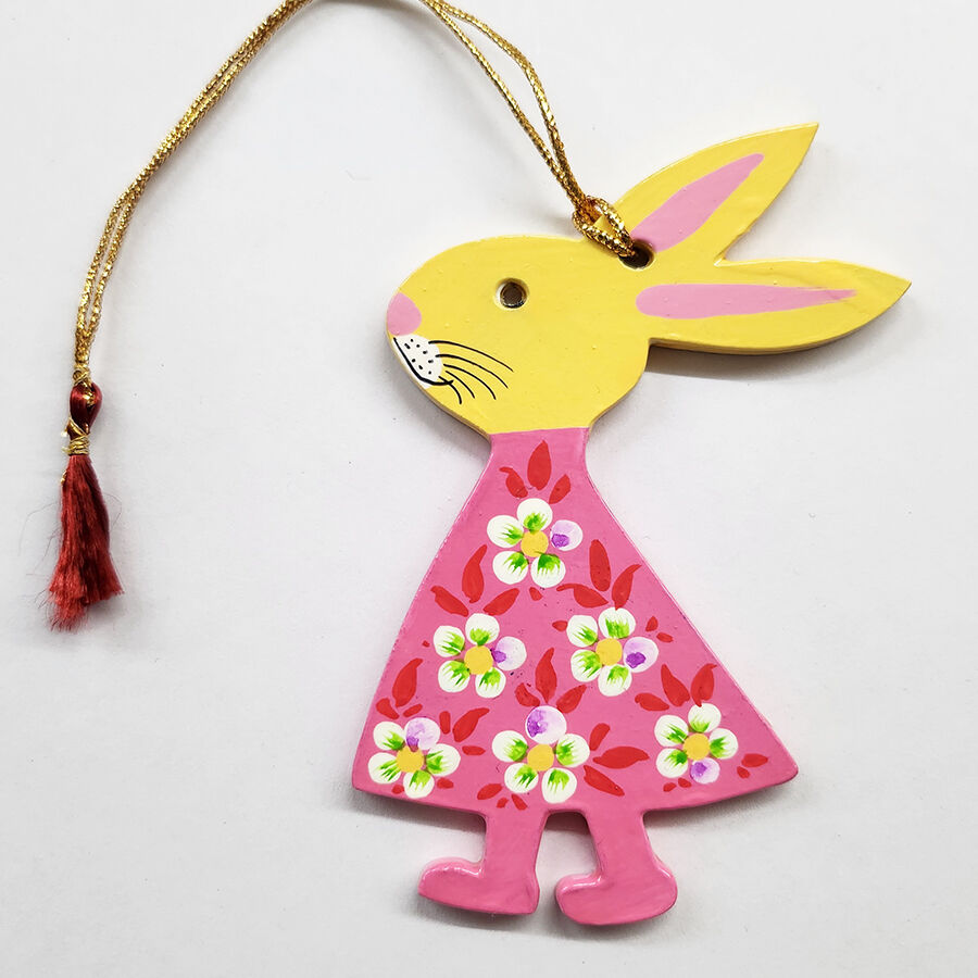 These delightful Easter Bunny hangings are made of MDF board and hand painted in Kashmir by a man with disabilities.